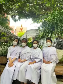 2. Meditation set Women wear white sarong + white long-sleeved shirt + white sash, men white pants + white short-sleeved shirt (the temple sells meditation clothes for those who did not prepare them)