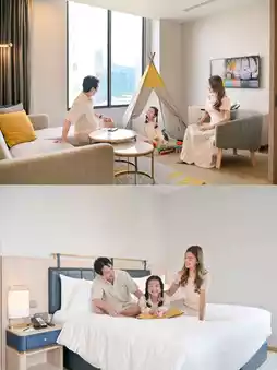 🏙️ Our family stayed in a One Bedroom Executive Suite, size 57 square meters. We really like the room, it feels like home. The room is spacious, has a living room, and has a tent set up and toys for the kids.