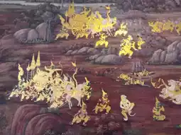 ✨️Phra Rabiang, see the mural paintings of the Ramakien from start to finish. The pillars of the gallery have inscriptions explaining the verses on stone tablets attached to them.