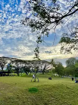 In the early morning light, I entered the Queen Sirikit Park, an oasis in the city surrounded by skyscrapers, yet it boasts a tranquil lake and meticulously designed sculpture garden. The Thai-style pavilions are reflected in the lake, with pigeons occasionally skimming the surface, creating ripples. I strolled along the stone paths, admiring the sculptures by Thai artists, each imbued with unique cultural significance.