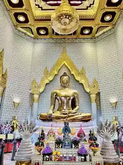 At dawn, I arrived at Wat Traimit. Although this temple is not as grand as the Grand Palace, it is renowned for housing the world's largest solid gold Buddha statue. As I stepped inside, the golden Buddha sat serenely on a lotus pedestal, exuding an aura of solemnity and tranquility. The morning light streamed through the windows, casting a warm glow over the statue. I gazed quietly at this ancient Buddha, feeling a sense of calm and peace wash over me.