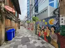 Today, we're taking you on a tour of another trendy area, Talat Noi. This place is a popular landmark among international tourists, accessible by both MRT and boat. It's perfect for those who enjoy walking, with art installations along the walls to admire. It's close to River City, a hub for art exhibitions. The riverside restaurants and cafes offer a great atmosphere, and everything is within walking distance. It's an ideal spot for a date or a casual stroll with friends. Food lovers will find a variety of options, from savory and sweet shops to cafes and seafood restaurants. This area truly has it all.