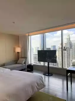 Environment/Facilities: Park Hyatt Bangkok is located on the bustling Langsuan Road in the heart of the city, offering a luxurious oasis that blends modern design with natural aesthetics. The standard rooms feature a minimalist design with floor-to-ceiling windows that provide ample natural light and stunning views of the city skyline or the hotel's garden. The public spaces continue the understated luxury style, including an infinity pool and a gym, allowing guests to enjoy an active lifestyle in comfort. The rooftop bar is the perfect spot to admire Bangkok's night view while enjoying fine wine and cuisine, adding a touch of urban romance.