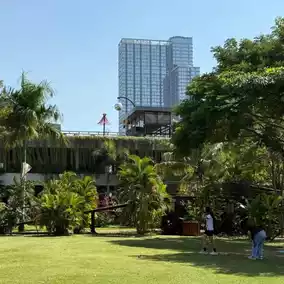 The lush vegetation and elegant walkways surrounding Benjakitti Park make you forget your worries in an instant. Whether it is a sunny day or under the cool shade of the trees, it is an ideal place to escape the hustle and bustle of the city. Visitors can ride bicycles, play on children's rides, or find a corner to read a book quietly and immerse themselves in the silence.