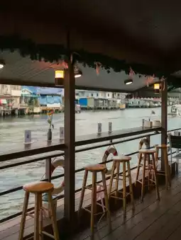 Today, Jack will tell you about a secret riverside cafe with a great atmosphere. There are drinks, noodles, and food. You can sit for a long time. Especially in the evening, the light is great. There are many photo spots. It's good to go with your partner or your gang. The price of food and drinks is good, not too high. This shop is also an old soy sauce maker in the area. We can buy it as souvenirs. Jack and his partner got a lot of beautiful photos. Anyone who travels to Bangkok must stop by and see.