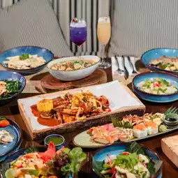 𝗜𝗻𝘁𝗲𝗿𝗻𝗮𝘁𝗶𝗼𝗻𝗮𝗹 𝗪𝗲𝗲𝗸𝗱𝗮𝘆 𝗕𝘂𝗳𝗳𝗲𝘁 Packed with lunch, international buffet with authentic Thai dishes, freshly cooked food with live cooking stations, delicious food, a very worthwhile lunch. Most importantly, you can bring your dog or cat with you. There is a zone for kids too.