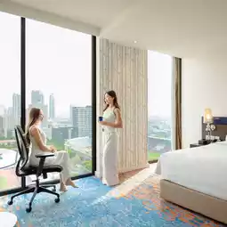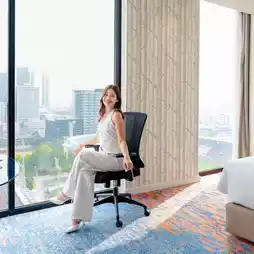 The room we stayed in was a room with a view of the national stadium. The view was beautiful and the room was airy because it had large glass windows. There were also comfortable pillows that we could choose according to our preferences.
