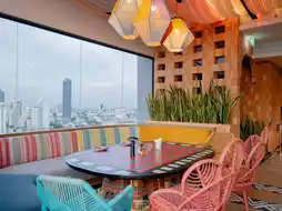 Taco Hachi is a rooftop bar and restaurant located on the 27th floor of TRIBE Living Bangkok Sukhumvit 39. It combines the atmosphere of a Mexican taqueria and a Japanese izakaya.
