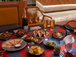 The atmosphere is fun and relaxing, with a beautiful view of Bangkok at night. The menu offers tacos, quesadillas, and other Mexican dishes made with fresh ingredients. There is also a wide selection of drinks to choose from.