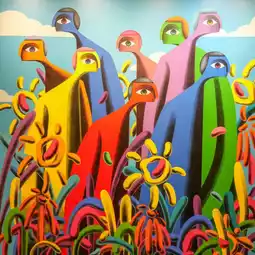 The artist uses bright colors and geometric lines to communicate the energy and emotions of life. The characters in the work have simple structures, but are filled with emotions and gestures that express human relationships, closeness, connection, and warmth.