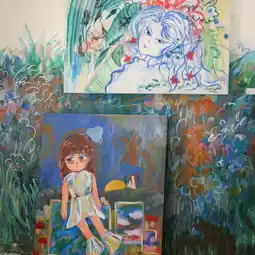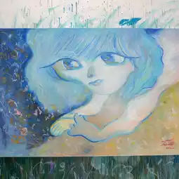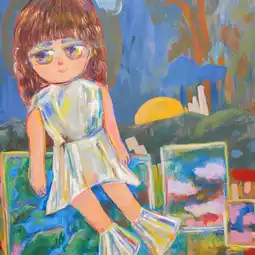 The artist's main character is a girl who looks like a character from a manga or fairy tale. She has big round eyes that reflect the world she sees. The artist uses colors and lines freely, without the framework of rules, to create power and movement in the artwork. The use of bright and intense colors reflects both the warmth and mystery in the emotions, as well as the composition of the image that gives the feeling of being lost in a dream world.