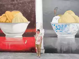 3. A cool photo spot at the entrance to the Ko Chai Issahak Mosque (Wat Ko Mosque). The mural art is at the entrance to the mosque and on the wall of the Gu Long Bao shop. It is a steamed bun. This is another place that people like to take photos.