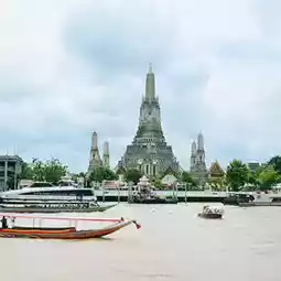 Start at the most amazing photo spot with the backdrop of the Prang of Wat Arun. Wait for the boat to pass by and get ready to snap away. I guarantee you'll get beautiful photos to show off to your friends on social media. After taking photos, take a ferry across to Wat Arun.