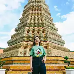 Stand and pose against the pillars at Wat Pho, one of the most classic locations that are important in terms of history and beautiful architecture.