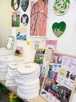 This is a place to rest your heart and relax. Inside the shop, there are many activities to do, such as coloring, throwing paint, pouring paint, making DIY hugging shirts. 🎨 There are also free paints and brushes to use.