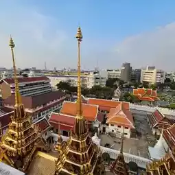 Visitors are allowed to enter, but must be respectful and remove their shoes before entering. The view from the top offers a panoramic sight of the Democracy Monument, Wat Saket (Golden Mount), palaces, and the inner city of Bangkok.
