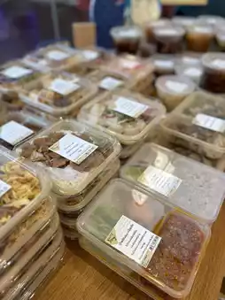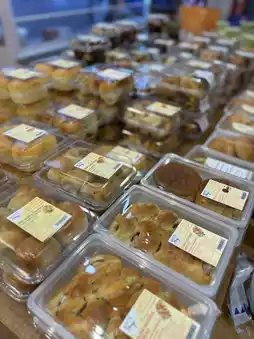 A bakery shop with a lot of breads lined up. This shop has both sweet and savory breads, both food, boxed meals, American fried rice, garlic pork, and many other menus to choose from. The shop often has promotions, very worthwhile. And the shop also has other products for you to shop and try. Personally, I like to buy purple sweet potato daifuku bread with Japanese sweet potato filling, pandan custard bread, delicious, must try. The shop often has a promotion of 2 boxes of bread for 100 baht, very worthwhile.