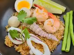 It has been open for over 50 years, the first branch in Trat Province, and now the second branch is open in Wang Lang. The shop is beautiful, the atmosphere is great, and the menu has a variety of dishes, including rice, noodles, and desserts, all in one place. There are indoor and outdoor seating areas.