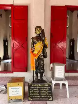 Wat Prayasuren is an ancient temple built by Phraya Suren Ratchasena. The temple features several attractions, including a large Luang Pu Thuat statue, the Naga Cave beneath the ordination hall, the Phraya Suren and Lady Bunmee Pavilion (the founders of the temple), mural paintings inside the ordination hall, a floating market, and even a sheep farm.