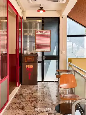 #tripแจกโรงแรมฟรี Mansion in Copenhagen, a newly opened cafe in Lat Phrao 71 area, comes with a unique Danish style. The shop is located on the 3rd floor of the building. You have to walk up the stairs to get there. The upper floor is divided into 2 floors, double volume style, airy and spacious. There is also a balcony area to sit outside, get some fresh air and natural light, perfect for photography lovers.