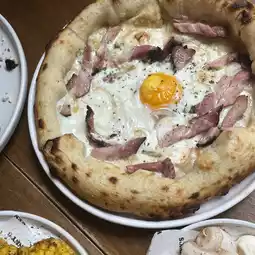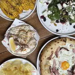 Kenny’s Pizza is a cozy little restaurant in Soi Ratchakru, near BTS Ari. It stands out with its homemade sourdough pizza baked in a charcoal oven. We love the dough; it's flavorful and soft. There are various toppings to choose from, such as the intense-flavored The Rumble or the creative mushroom and cheese pizza, which is also delicious. Additionally, there are side dishes like corn ribs (cheesy and buttery, almost irresistible), mac & cheese, and various salads that are refreshing and well-made. The appetizers include crispy potatoes.