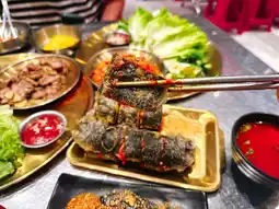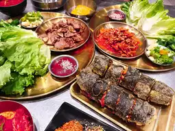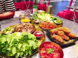 The food at the restaurant, whether it's grilled pork or beef, will be grilled and served with vegetables and side dishes.