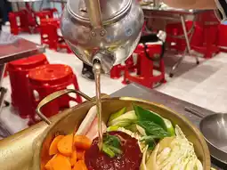 Who likes eating Korean food and gets a red tent feel like this, raise your hand.