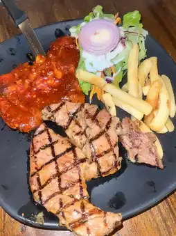 ✅ Pork steak + chicken sauce, very delicious, it's a promotion, very cheap