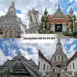 This is another beautiful day. Thai people get in for free, while foreigners pay an entrance fee. The highlight of Wat Arun is the prang of Wat Arun, which is popular for both Thais and foreigners to take pictures. At night, the lights are turned on beautifully, especially the pier on the Chao Phraya River, which is very beautiful.