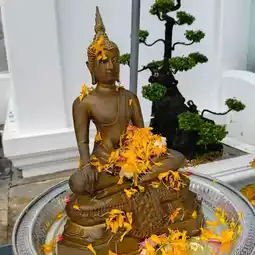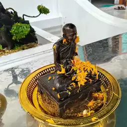 Travel Dlux came to worship the Buddha during the Songkran Festival and made merit at Wat Nang Ratchaworawihan, where the temple organized a water pouring ceremony for the small Luang Pu, the former abbot of Wat Nang Ratchaworawihan, to bring good fortune to the people who respect and believe in him. They came to pay homage and ask for a blessing from Luang Pu Aiem during the Songkran Festival, asking for prosperity and good fortune in life, to be happy and fulfilled, and to see the history and beauty of Wat Nang Ratchaworawihan.
