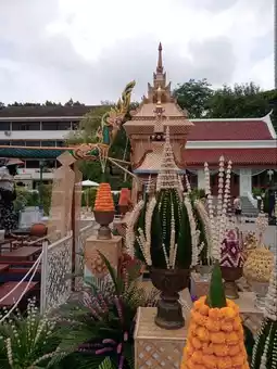 ✨️See the chapel that looks like an ordination hall with a pagoda in the middle. The temple is quiet and suitable for meditation.