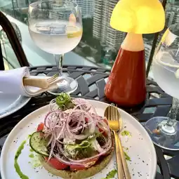 Wonderful rooftop dining experience. Greek food was delicious. We ordered greek salad( excellent!), mixed grill and grilled begetting share between us. Everything was delicious! The view overlooking a city park and lake with a spectacular view of the skyline can't be beat. Would definitely recommend. Great place for celebrations!!!