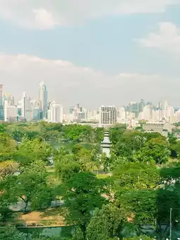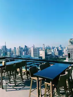 From the outdoor area, you can enjoy a panoramic view of Bangkok's cityscape.