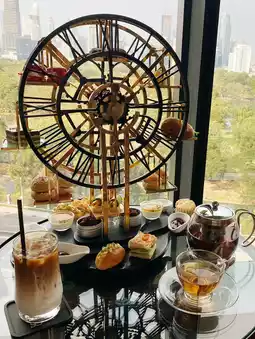 Afternoon tea served on a cute Ferris wheel 🎡 Located in a 5-star hotel, right in front of the majestic urban oasis "Lumpini Park ⛲️", you can spend an elegant time soothed by the greenery.
