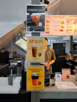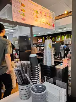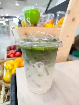 8 Cafe ☕ Newly opened cafe on the 1st floor of CP 3 Tower, Phaya Thai Road, Ratchathewi District, Bangkok. This is a small coffee shop and has real fresh fruit juice, a healthy recipe without sugar. There are many fruits to choose from. Matcha latte is also delicious. This shop doesn't make it too sweet. If you like it sweet, I recommend ordering extra sweetness. This is another shop that is popular among health-conscious people. The atmosphere is cute. There are 2 tables on the side of the shop.