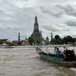 Get off at the nearest station by MRTⓂ️ and walk🚶 to the pier. When you see a magnificent building🏛️ across the river, your excitement will rise⤴️. The tall pagoda and luxurious decorations are magnificent, and you can climb up and look down on the view. However, please be careful as the stairs are steep. There were many tourists taking photos in traditional costumes. Even after returning home, everyone was envious of the place because it is well known.