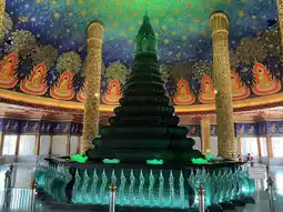 Wat Paknam Phasi Charoen is home to impressive large-scale structures, including the Phra Buddha Dhammakaya Thep Mongkol, a meditation posture Buddha statue standing 69 meters tall. Completed in 2021, it is the tallest Buddha statue in Bangkok and the third tallest in Thailand. Visitors passing by the area can spot it from afar. Another grand structure is the Phra Maha Chedi Maha Ratchamongkol, completed in 2020. Wat Paknam is an ancient temple dating back to the mid-Ayutthaya period, established by the royal family of the Ayutthaya Kingdom. The temple is situated on a rectangular island surrounded by water on all sides. Its architecture and artifacts, such as the Tripitaka Hall and the Tripitaka cabinets in Busabok style, showcase the craftsmanship of royal artisans during the reign of King Narai the Great. Historically, Wat Paknam played a significant role as a royal monastery outside Ayutthaya and served as a key temple in the coastal frontier towns. Getting there is convenient—take the BTS Skytrain to Bang Wa station, then a short ride to the temple. The structures are sturdy and safe for visitors to explore.