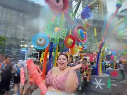 What I like most about this event is the colorful decorations like 𝗦𝗨𝗠𝗠𝗘𝗥, as well as the letters that represent Thainess, flowers, and various fabric patterns. It's fun to play in the water and take beautiful photos. People of all ages can play. There are both sitting areas, food and drinks, and after playing in the water, There is also a drying zone, super convenient