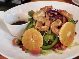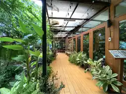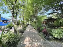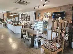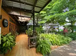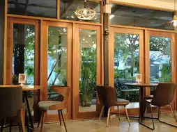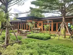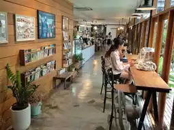 It is a cafe in the Lasalle area, Samut Prakan Province. Inside the shop, there is a spacious area, shady with large and small trees, decorated in a garden style. There are both indoor and outdoor seats. There are many tables to sit and eat. The menu sells main dishes, snacks, bakery, coffee and various drinks. All food is organic. You can order food at the counter. There will be staff to deliver it to the table.