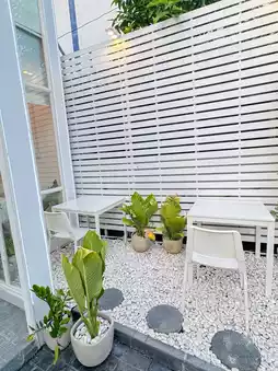 Anyone looking for accommodation and a cafe near Don Mueang Airport, priced in the hundreds, must be here, 54Place hotel or 54Place cafe. It is a homey-style accommodation with a cafe inside. The cafe is in a very cute minimalist style. The food is delicious. I recommend the coffee, Americano Orange, very refreshing. The highlight is the honey toast with fruit, very delicious, I must say. And most importantly, it is very cheap. There are many photo spots. You can take photos from many angles. The staff provides good service. Content creators must not miss it.