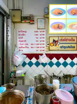 There is a pig's feet rice bowl restaurant that you must visit when you go to CharoenSilom in Bangkok.