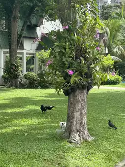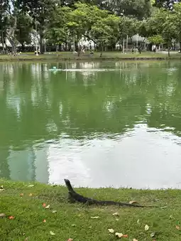 If you go early in the morning, it won't be too hot, and you can enjoy the atmosphere of the green park with people walking and running, cats, lizards, etc.