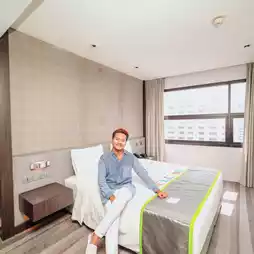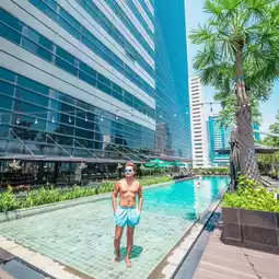 This is a hotel with a complete restaurant, fitness center, swimming pool