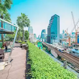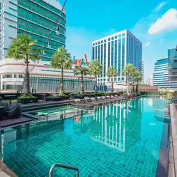 Plus the swimming pool has a beautiful view, overlooking the BTS and the city