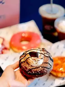 with the deliciousness of soft and chewy donut dough like no other because the donuts here are made by hand with meticulous care from the dough, jam and Glaze using real French butter