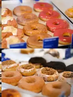 Here, there are 9-12 donut flavors to choose from, rotating every day. Our favorite is