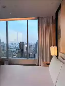 This Christmas, I stayed there again. The hotel was adorned with Christmas trees that perfectly complemented its overall style—absolutely stunning. However, I was a bit disappointed with the deluxe suite I stayed in. The room was long and narrow, with limited actual space, making it feel like a trek to move around. Plus, there was only one bathroom, which felt a bit cramped. Thankfully, the floor-to-ceiling windows in the corner were a big plus, offering breathtaking views during sunset and nighttime.
