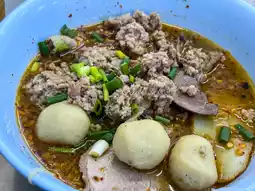 💞Reason for Recommendation: As soon as I landed at Don Mueang Airport, I rushed here to try it out. Based on online reviews, it truly lives up to the hype! It’s explosively 💥 delicious! I recommend ordering one bowl of soup noodles and one bowl of dry noodles! Don’t forget to add some crispy fried fish skin and the national drink—longan juice 🍹.