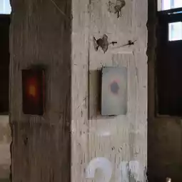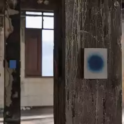 The artist uses sponges and terracotta as the main materials of his work, with many small paintings on terracotta and large paintings on sponges arranged along the stairwell of an old building leading to the third floor. The highlight of the work is the free permeability of the pigments through the surface, using red soil from Khao Yai mixed with local plants. Before letting the natural light and shadows of the day overlap, turning it into a living and never-ending painting.