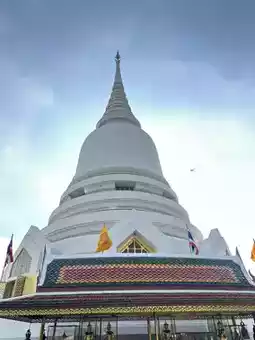 Wat Phra Sri Mahathat Woramahawihan is located in Bang Khen District, Bangkok. It has the Phra Chedi Sri Mahathat, a large white chedi enshrining the relics of the Lord Buddha. 🕍